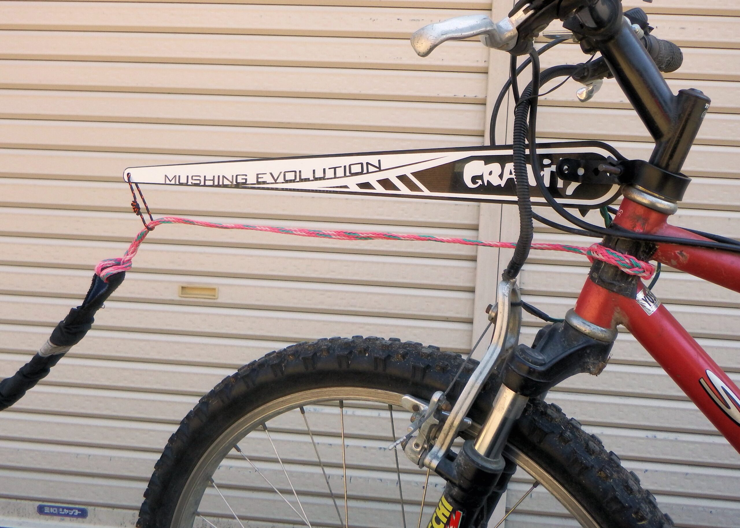 車に犬を係留する時にこの調整用ラインをホイールに通してから係留鎖とつなげばホイルに傷がつきません。
